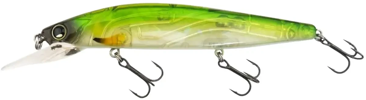 Тіло цієї блешні має сміливі прямі кути, які грають із сяйвом світла, створюючи магічний ефект, неповторний у будь-якій воді. Внутрішнє навантаження, обладнане системою балансування Jerk Assist Balancer System, танцює у воді, змінюючи центр ваги та створюючи ефектну гру рухів, немов п'єса великого художника.